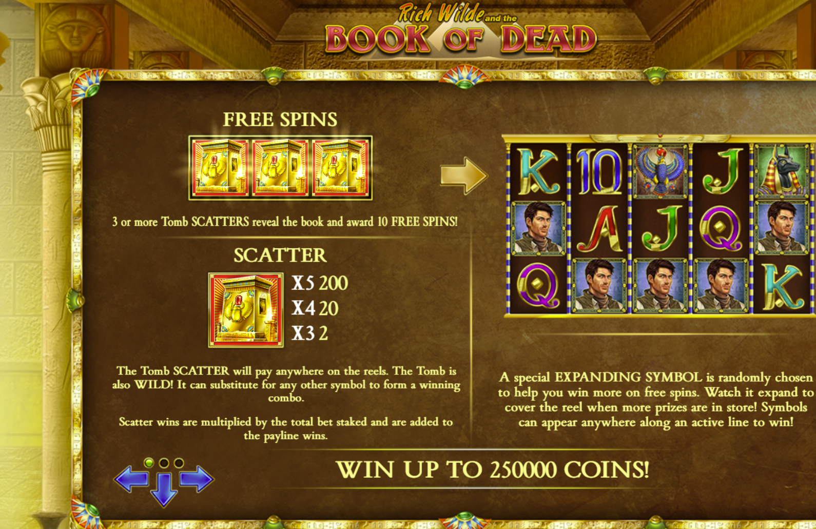 The special symbol the Book of Dead acts both as Wild and Scatter: